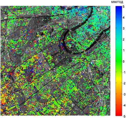 Результат обработки радиолокационных данных методом DinSAR: